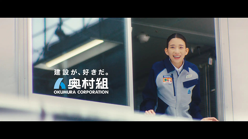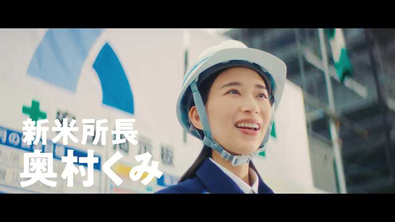 今回のCMはシリーズ8年目となる「建設LOVE!奥村くみ」の最新作で、奥村組が掲げる「女性のキャリアアップ」と「男性の育休取得」をテーマに制作されたとのこと。所長に就任しやりがいに満ちた奥村くみと、育休を通じて新たな発見をする山中先輩の姿が描かれているとのこと。