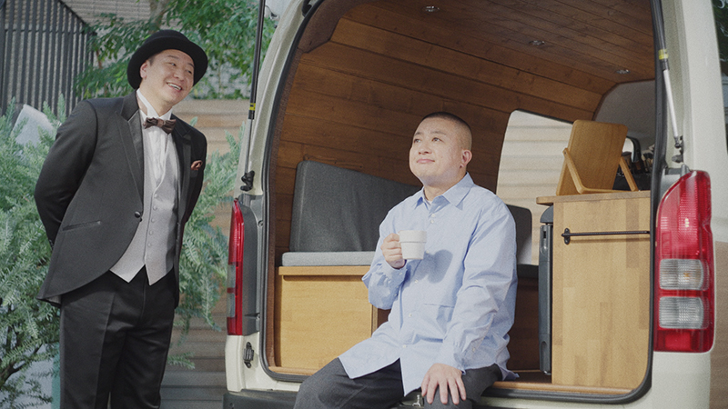 今回の動画では、長田さんが味の素AGFオリジナルソング「いつでも、ふぅ。」を熱唱。さらにコーヒーの精に扮した長田さんが、松尾さん演じる3人のキャラクターに「Relax」「Reset」「Refresh」の3つの価値を届ける構成になっているとのこと。