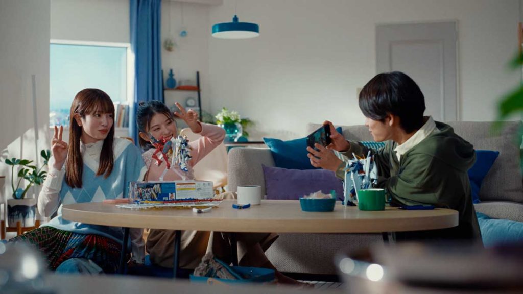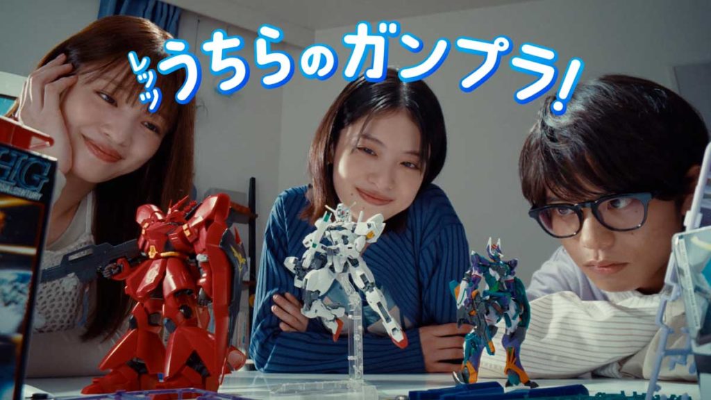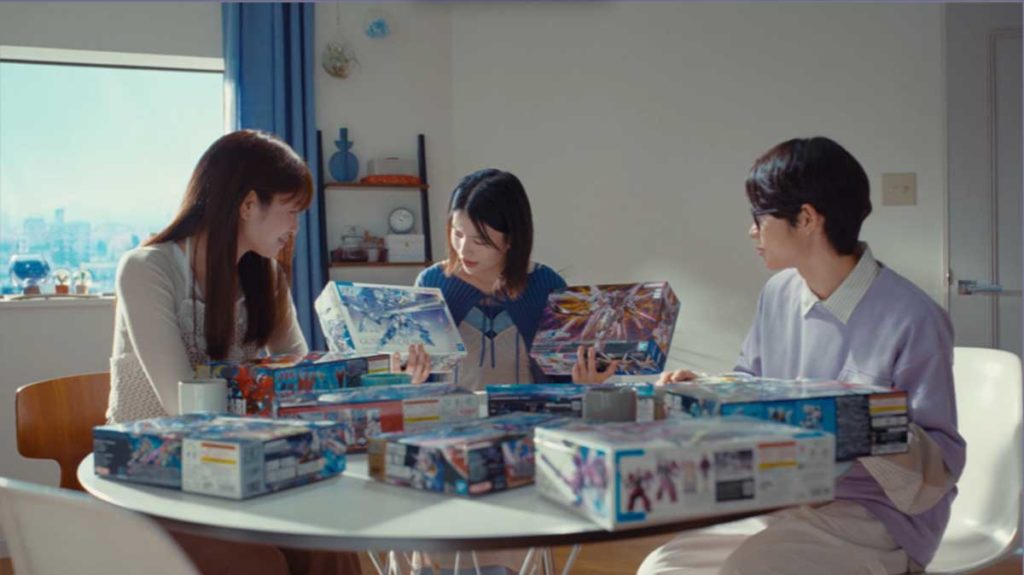 9月5日から放送される新CM「推しガンプラ」篇では、出口さん、横田さん、そして横田さんの弟役を演じる黒川さんの3人が、楽しそうにガンプラを選ぶ様子が描かれています。ずらりと並んだガンプラの中から、それぞれの「推し」を見つけ、夢中で組み立てて完成させるまでの、仲睦まじい姿に注目です。