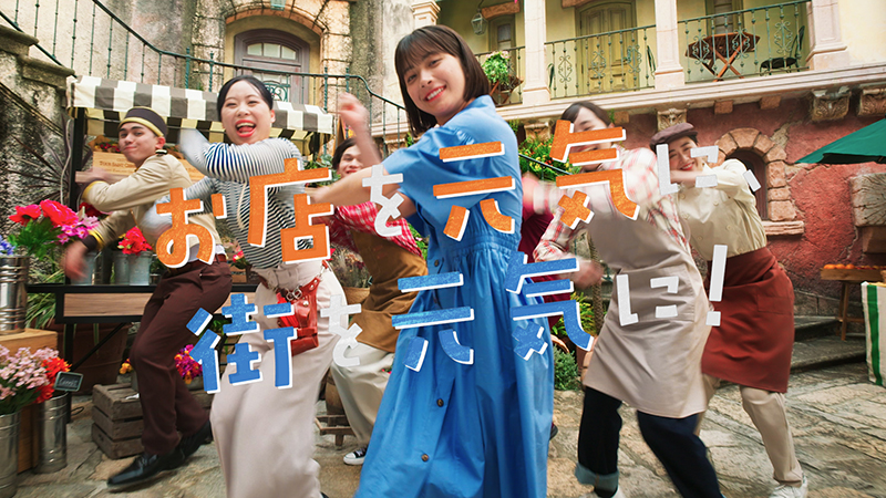 撮影現場に入った時、活気に溢れた彩りのある街のセットがとても印象的でした!スマレジさんが歩くと元気に働いている皆さんが手を振ってくれたり、声をかけてくれたりしてくれるので私自身もたくさんのエネルギーを貰いました!CMを観て、皆さんもたくさんパワーをもらってください♪