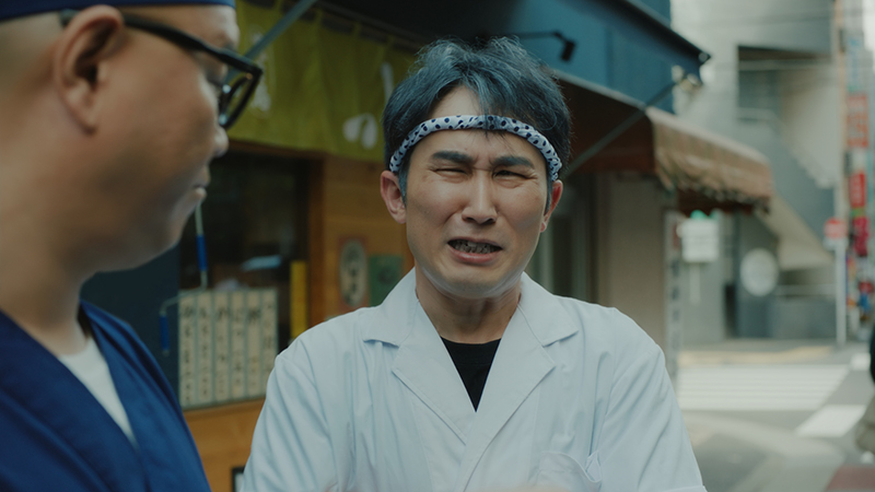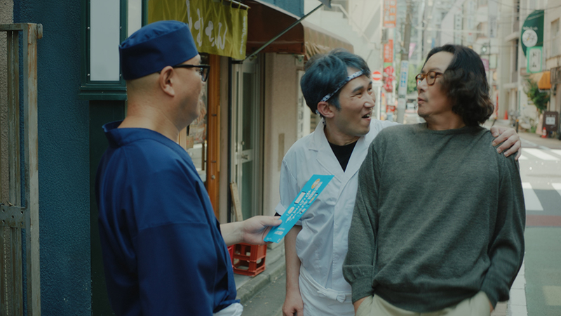 隣の店主役として登場したじろうさんと長谷川さんが、店先で“Airレジ オーダーってどうなの?”と立ち話。導入をためらうじろうさんに対して、「サポートがちゃんとある」「機器セットがもらえる」など、実体験を交えて、背中を押す会話劇となっています。さらに会話の途中では、通りがかった長谷川さんの店の常連客の豊川さんが、じろうさんに突然肩を組まれて絡まれるという、コミカルでテンポのいいやりとりも。導入にまつわる“本音と不安”を、笑いを交えながら描いた、親しみやすいCMに仕上がっているとのこと。