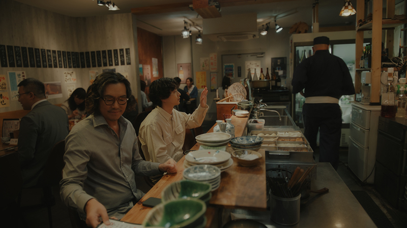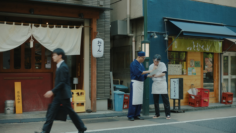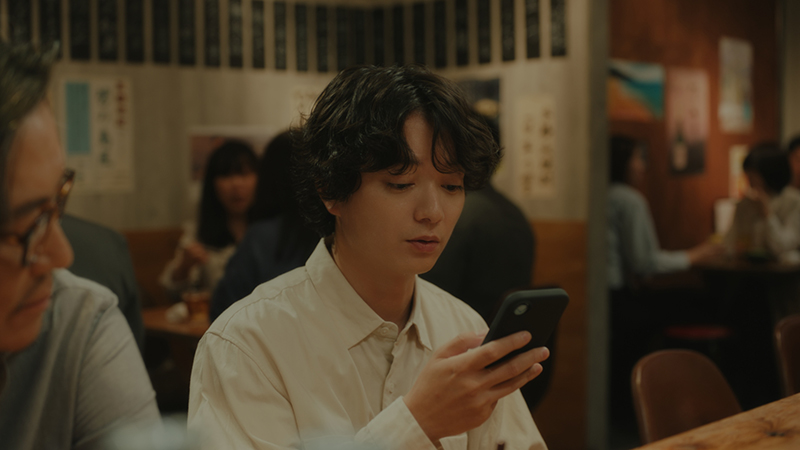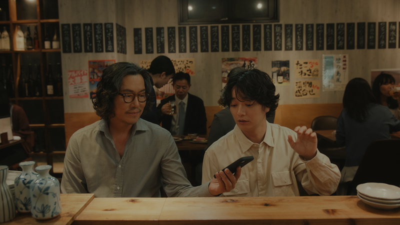 “口頭注文とスマホ注文が混在する”リアルな居酒屋の風景を描写。小手さん演じる隣の客が、『Airレジ オーダー』を使いこなす豊川さんを見て、「スマホで注文!?」と興味を持つリアクションをきっかけに、口頭で注文したい人にも、モバイルで注文したい人にも、お客様が心地いいお店づくりができることを、豊川さん&長谷川さんの静かなやりとりで表現しているとのこと。