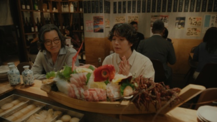 注文のタイミングを逃してしまった染谷さん演じる後輩が、先輩の豊川さんに促され、『Airレジ オーダー』で追加注文したのはまさかの舟盛り。予想外の高額な注文に内心は驚きつつも微笑ましく見守る豊川さんの反応と、ギャップのある表情演技が見どころです。気まずさを避けつつ、好きなタイミングで追加注文できるという『Airレジ オーダー』ならではの“気軽さ”と、それが店舗にとっては売り上げチャンスにつながるメリットを、クスッと笑えるやりとりで表現しているとのこと。