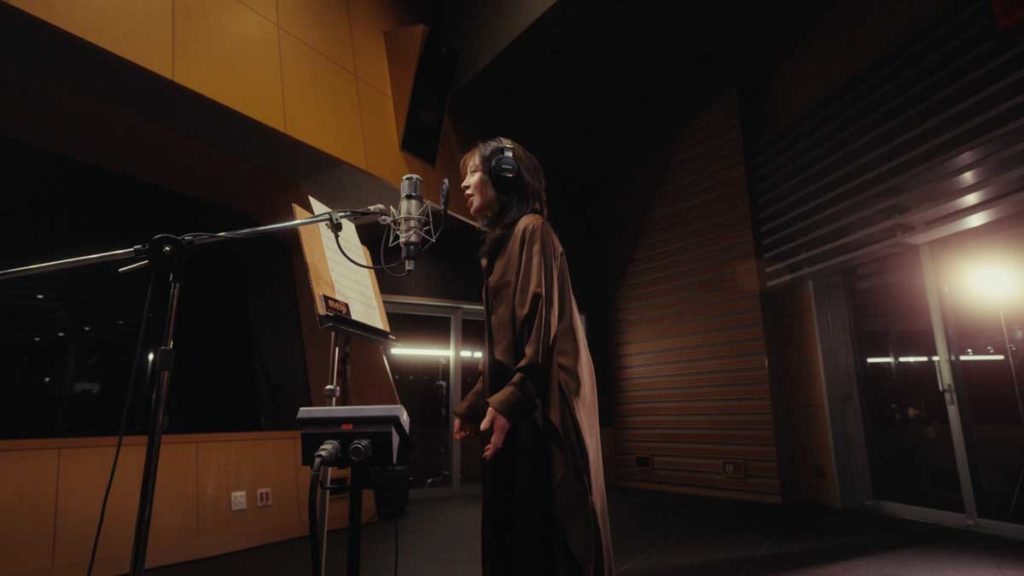 そう語るとレコーディング室へ向かい、おなじみの「チョコレート、チョコレート、チョコレートは明治♪」というフレーズを、可憐で伸びやかな歌声で披露。 楽しそうに歌い上げる姿が印象的です。