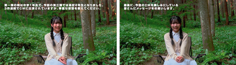 Q:第一弾の時は中学1年生で、今回の第三弾では高校2年生となりました。3作連続でCMに出演されていますが、率直な感想を教えてください。