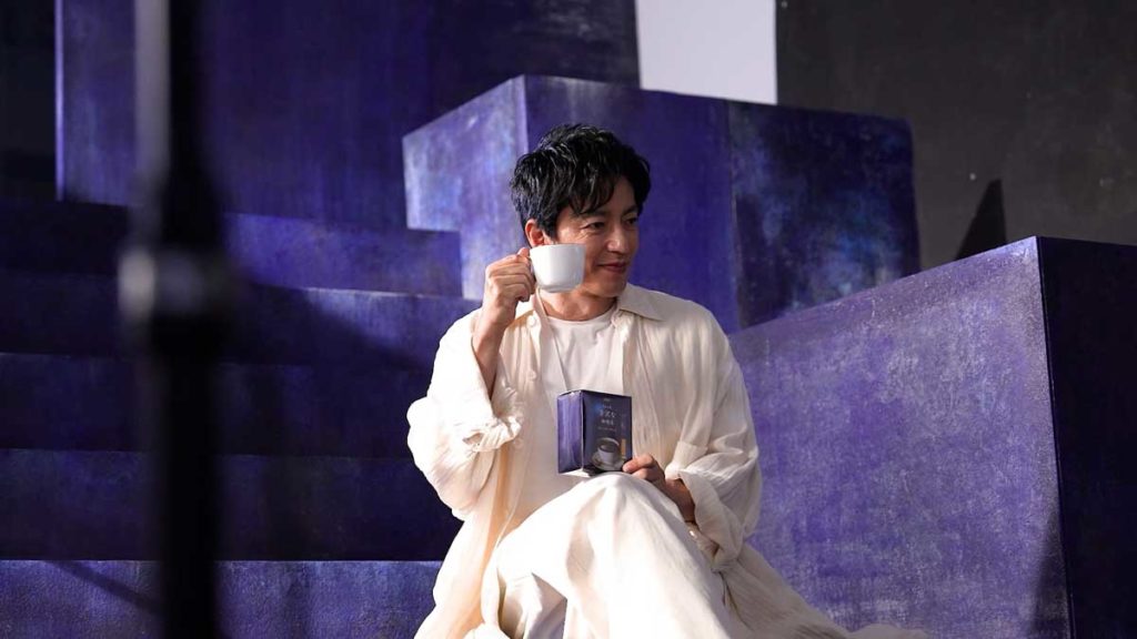 撮影は、幻想的な青の世界観をイメージしたセットで行われ、全身ホワイトの衣装で登場した大沢さん。柔らかな表情の中にも芯のある真摯な眼差しに、現場のスタッフも思わず息をのんだといいます。OKテイクが出た後も「もう一度やってみても良いですか」と自らの演技に妥協せずこだわるストイックな一面を見せる一方、コーヒーを飲むシーンでは「このシーンは何回でもできます、珈琲が好きなので」と笑顔で語り、現場を和ませる一幕もありました。