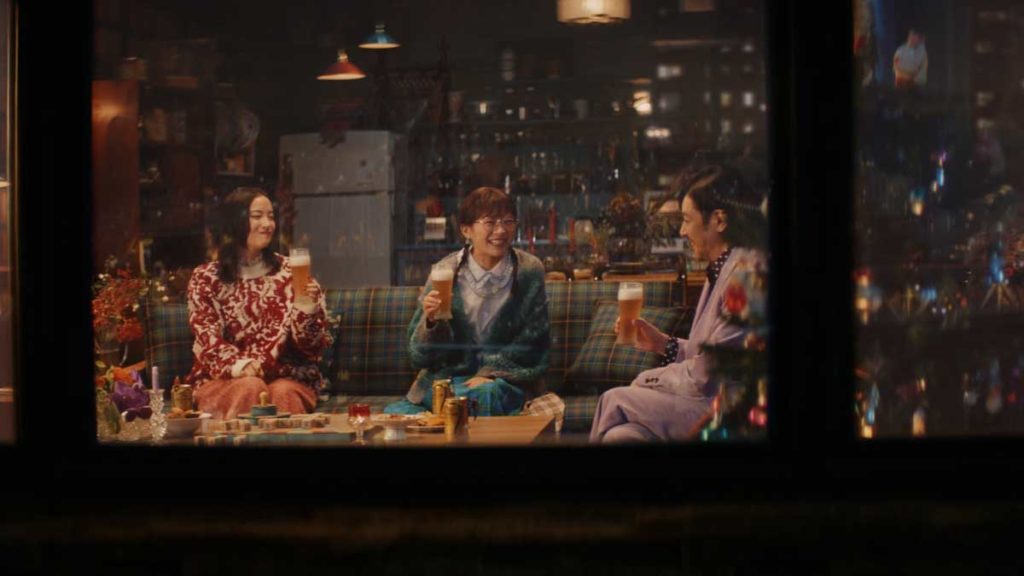 おしゃれなインテリアに囲まれ、窓の外にはマンハッタンの夜景。そんな素敵な空間で「ザ・プレミアム・モルツ」を片手にくつろぐ3人ですが、話題はやっぱり懐かしい「あの頃」のこと。