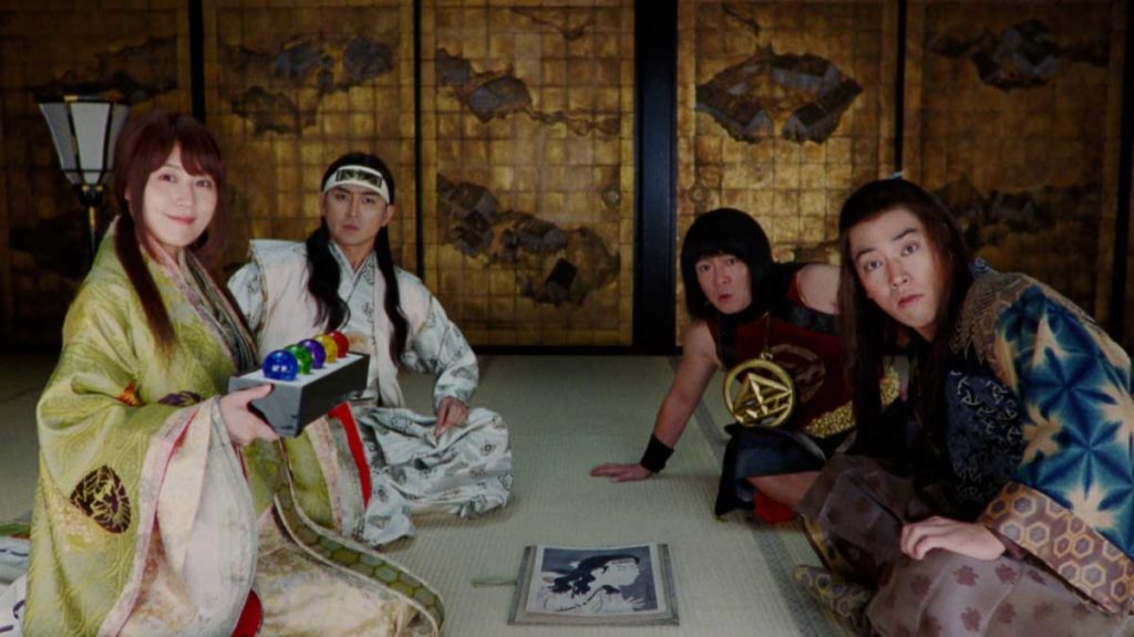 新CMの舞台は、桃太郎(松田翔太さん)の家の居間。大掃除中に見つかった桃太郎の自画像について、かぐや姫(有村架純さん)、金太郎(濱田岳さん)、浦島太郎(桐谷健太さん)たちが盛り上がっているところへ、突如として大沢さん演じる天帝が現れます。