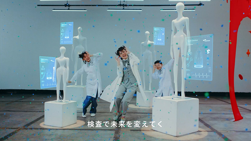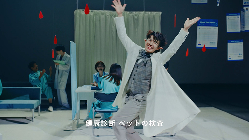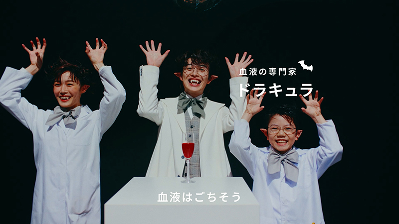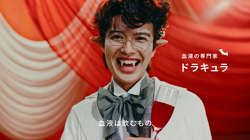 ドラキュラさんが血液の専門家として登場するこのCMシリーズは、血液検査の大切さや医療の未来を、歌とダンスで楽しく伝える内容とのこと。新作では「血液はごちそう…じゃなくて、可能性」「血液は飲むもの…じゃなくて、調べるもの」といったユーモラスなフレーズを、オリジナルソングに乗せてドラキュラさんたちが表現。血液検査が私たちの健康やこれからの医療にどうつながっていくのかを、親しみやすく伝える内容。ドラキュラ役を演じる俳優陣の個性が光る、印象に残るCMシリーズ。