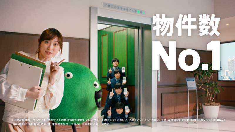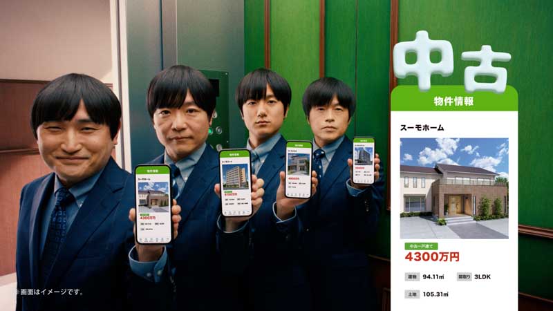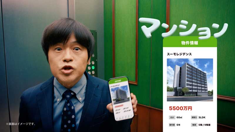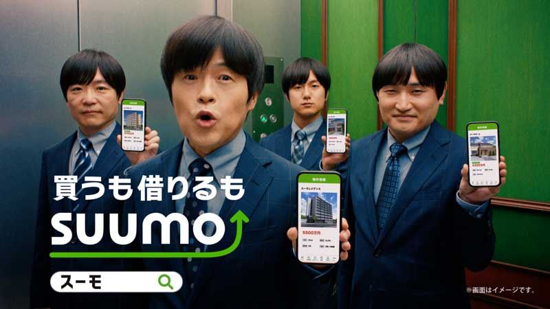 2026年1月4日(日)より放映される新CMの舞台は、オフィスビルのエレベーター。バカリズムさんが福原さんに「知ってた?家買うときも『SUUMO』なの」と話しかけるところから始まります。 「も?」と不思議そうな福原さんに、次々と畳みかけるバカリズムさん。すると、エレベーターの扉が開くたびにバカリズムさんのそっくりさんが現れ、「一戸建ても!」「新築も!」「中古も!」と声を重ねていきます。 「買うも借りるもまとめて探せるSUUMO」というメッセージを、テンポの良い掛け合いとユニークな演出で表現した、思わずクスッとしてしまう映像に仕上がっています。