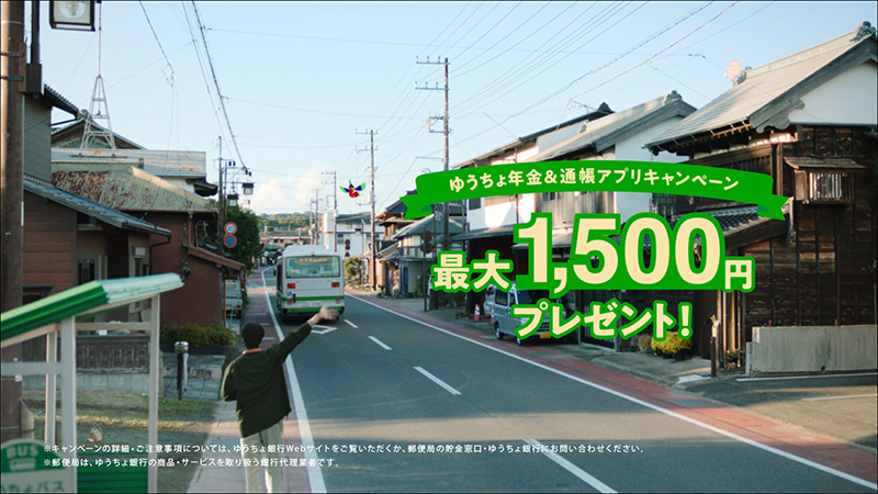 全国各地に郵便局やゆうちょ銀行がある安心感や、丁寧な対応が自然と伝わる構成。好奇心旺盛で明るいご婦人とのやり取りを通じて、「年金受取ならゆうちょ銀行」というメッセージが描かれている。30秒版では多くのシニア世代も登場し、賑やかで温かい空気感が印象的。
