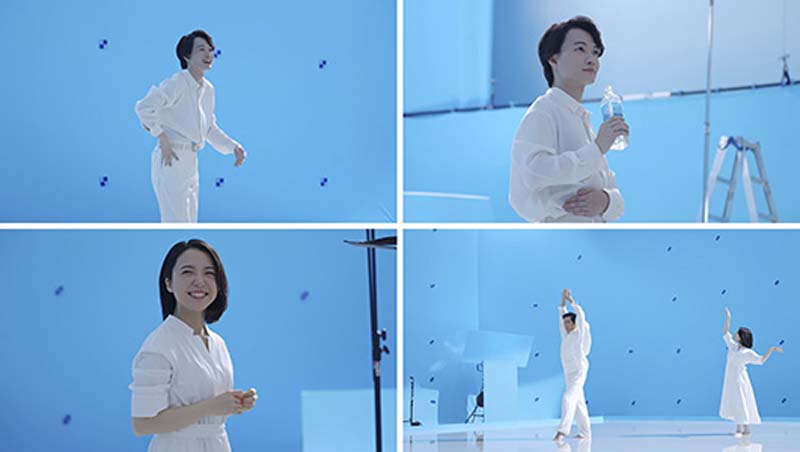 撮影を終えて、上白石さんは「気持ちの良い風や足元の水を感じながら撮影しました。振り付けはちょっと難しかったのですが、今までにないお水のCMが生まれたのではないかと思います」と手応えを語り、神木さんも「水が張られ、砂が敷かれたセットだったのでイメージを掴みやすく、楽しく撮影することができました」と振り返りました。