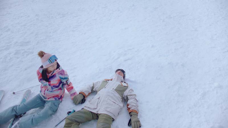 「今回初めてリフトにも乗ったんですけど、ちょうど朝日が出てきて、その景色があまりにも幻想的で、それはすごく印象的でした。すごくきれいでした。リフトで見た朝日と、あとなかなか、雪に寝転がって空を見上げるというのは、今まで体験したことがなかったので、これは今しかできないことだなと、贅沢に思いました」