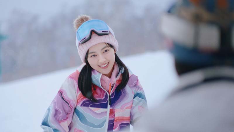 今シーズンのキャッチコピーは『今だけは青い冬。』。 CMの舞台は、初めてのスキー旅行に訪れた大学生たちのサークル旅行です。上坂さんは大学2年生の後輩役として出演し、4年生の先輩男子との甘酸っぱい距離感や、仲間たちと雪山を楽しむキラキラとした青春の一瞬を演じています。