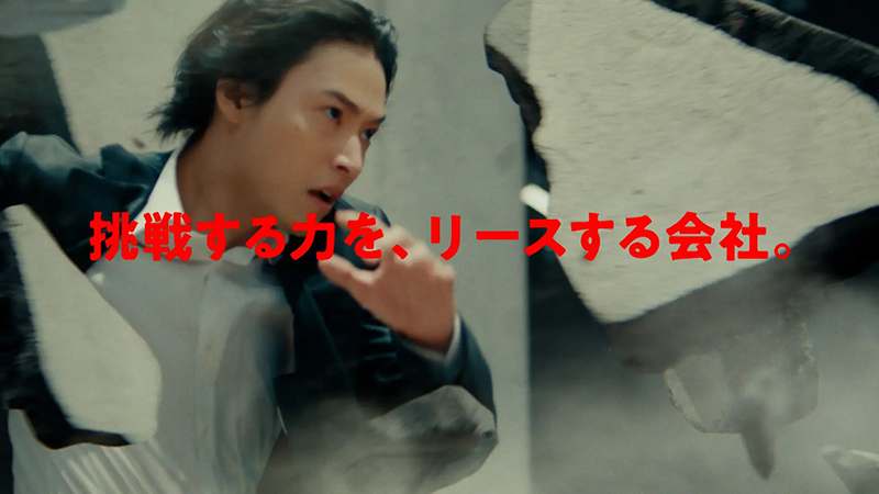 CMのキャッチコピー「挑戦する力を、リースする会社。」には、モノの提供にとどまらず、幅広いサービスやソリューションを通じて、利用者の挑戦に寄り添い、ともに未来を切り拓いていきたいという思いが込められているという。壁を破る演出や一瞬の集中力が求められる場面を通して、そのメッセージを直感的に伝える構成。