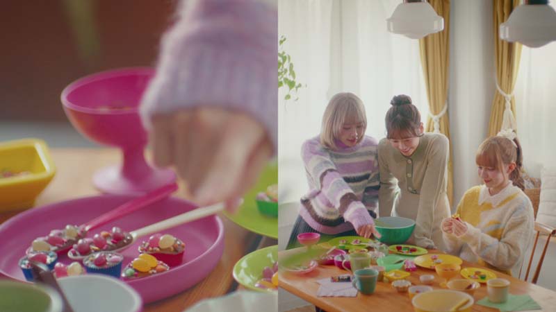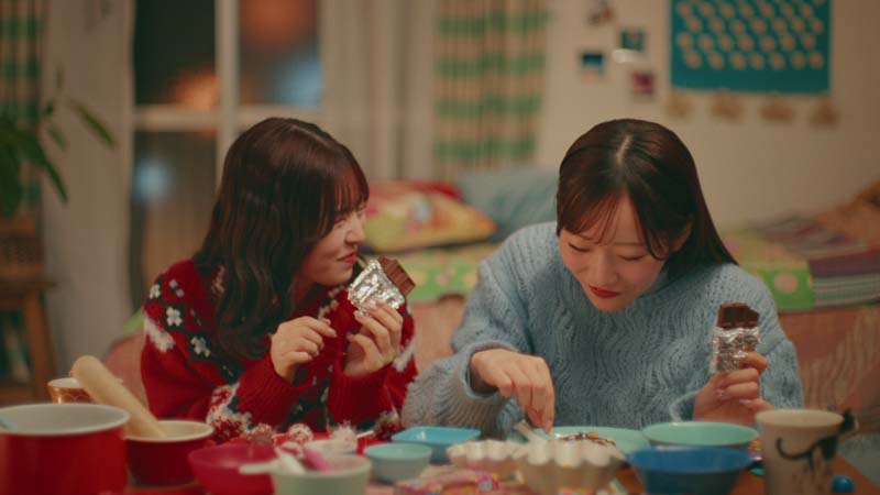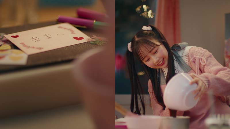 新CMでは、彼女たちの楽曲「ハピチョコ」が流れる中、メンバーそれぞれが大切にしている「好き」の形が描かれています。 母親に電話をしたり、友人と過ごしたり、推し活に夢中になったりと、等身大の姿が映し出されるほか、言葉だけでは伝えきれない想いを込めて、ピュアなチョコレートで手作りするシーンも見どころです。