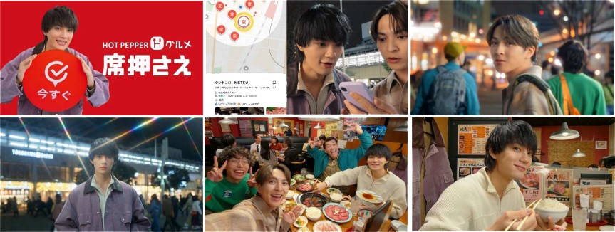 新WebCMでは、アプリ限定の新機能「席押さえ」を軸に、直前でも空席のある店をスムーズに見つけられる様子を描写。焼肉店を前に幸せそうな表情を見せる佐野さんや、夜の駅前で店探しに困る中、「席押さえ」機能を使ってスマートに予約を進める吉田さんの姿が印象的。吉田さんが焼肉に誘う一言に、佐野さんが「え、好き。」と返すやり取りも見どころのひとつ。撮影後のインタビューでは、互いの印象や、M!LKのメンバー同士で食事に行く際のエピソードなども語られている。
