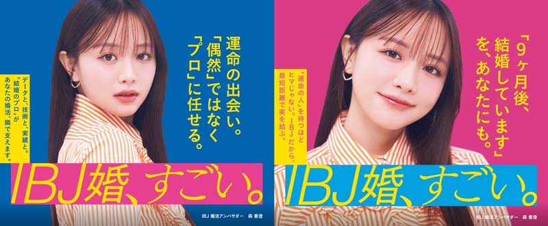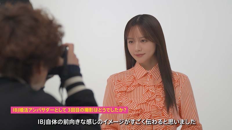「結婚ってもちろん人生の中でのすごく大事なイベントになりますし、なかなかパッと決められるものではないと思うんですけど、結婚したいなって思っているだけで時間がどんどん過ぎてしまうのはすごく勿体ないと思うので、IBJのサービスを一度利用してみるっていう、一歩踏み出してみるっていうのがすごく良いなと思っています。そのために今回私はすごくポップな感じでビジュアルを撮らせてもらったので、電車とかで見つけた時に『ちょっと登録してみようかな』と思っていただけるように私も頑張りたいなと思っています」
