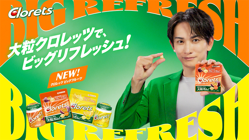 息スッキリガムとしておなじみの「クロレッツ」から、大粒タイプの新ライン「クロレッツビッグフルーツ」が登場。それに合わせて、町田啓太さんを起用したCMやデジタル動画が公開されたとのこと。