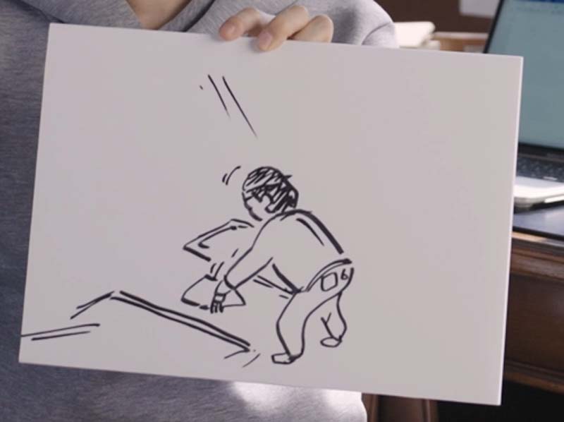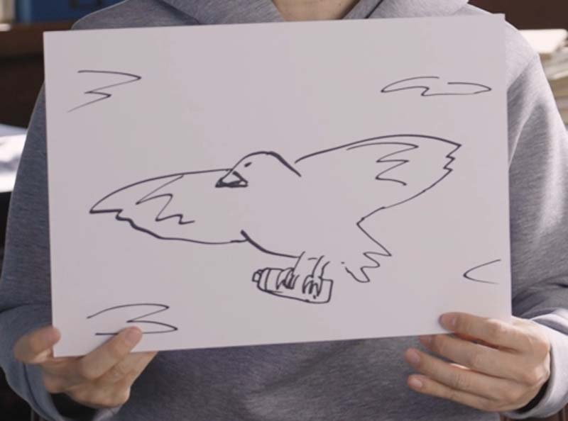 「野球の審判がベースをサッサッサッサってやっている時。こう見えて、脂肪消費中です・・・・・・大喜利としては一番やりたくない環境ですね。周りがシーンとしている(静かにしないといけない)インタビュー中に大喜利、なんでやらせるの(笑)。」――続いて、「ヘルシア」を一番スマートに持ち運ぶ方法をイラストで表現してください。