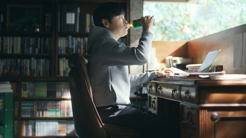 今回のCMは、とある架空の場所で脚本の執筆をしているという設定で撮影されました。書斎で一人、ノートパソコンに向かう様子はドキュメントタッチで丁寧に描かれており、まるでバカリズムさんの本当の仕事場を覗き込んでいるかのような錯覚に陥ります。