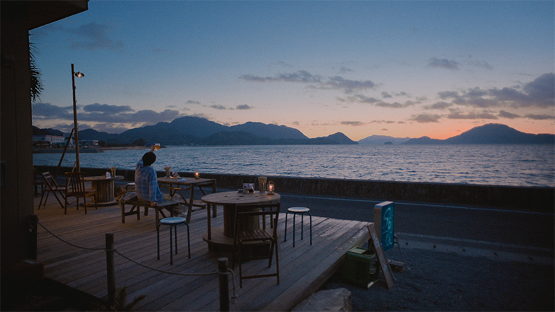 グラスを空に掲げるシーンは日の入り前後を狙って撮影されたそうです。夕暮れから日没後までのわずかな時間しか見られない絶景を収めるため、現場はスタッフ総出で一気に準備が進み、独特の緊張感に包まれていたとのこと。その中で河合優実さんは静かに海を見つめながら集中を高めていた様子。本番では刻々と変わる幻想的な景色に後押しされるように感情も高まり、ぐっと引き込まれる演技を見せていたようです。
